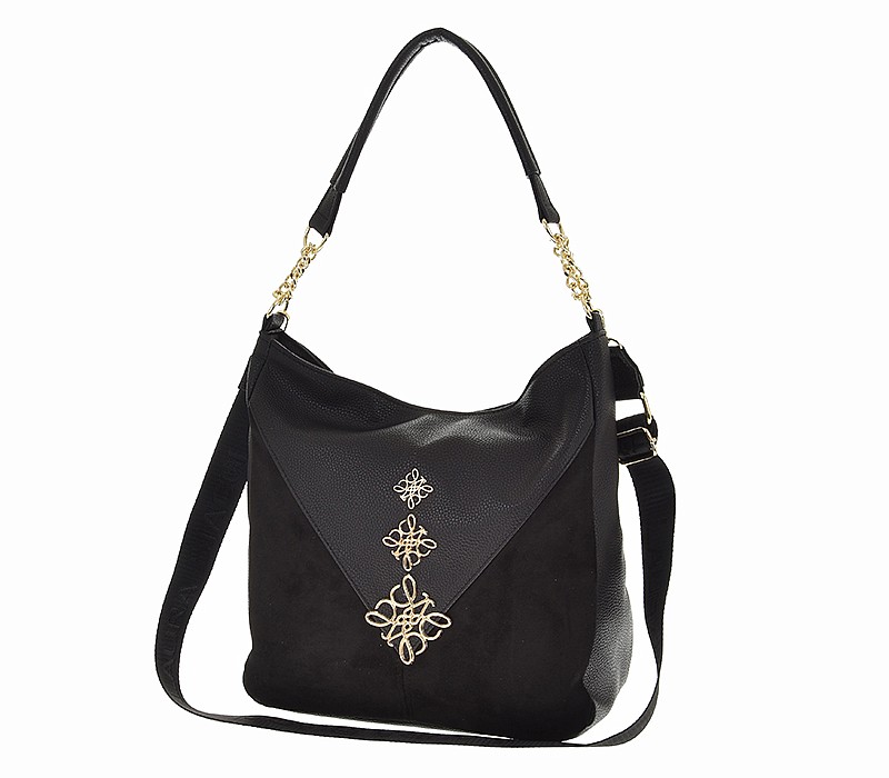 - dámská kabelka vyrobená z měkké eko kůže v kombinaci s broušenou kůží /semiš/ na předním dílu
