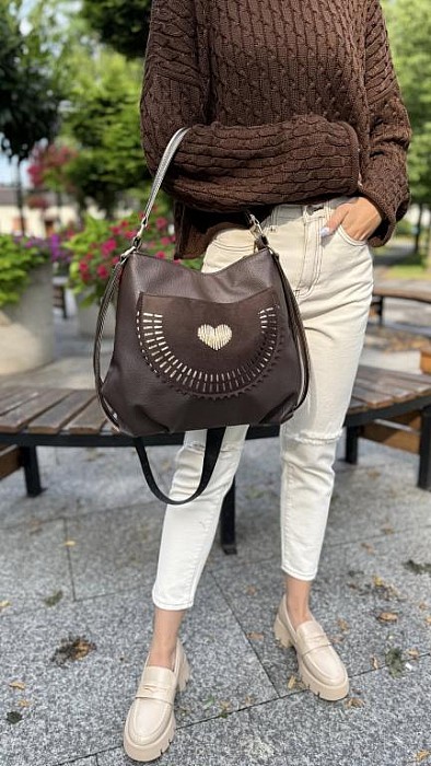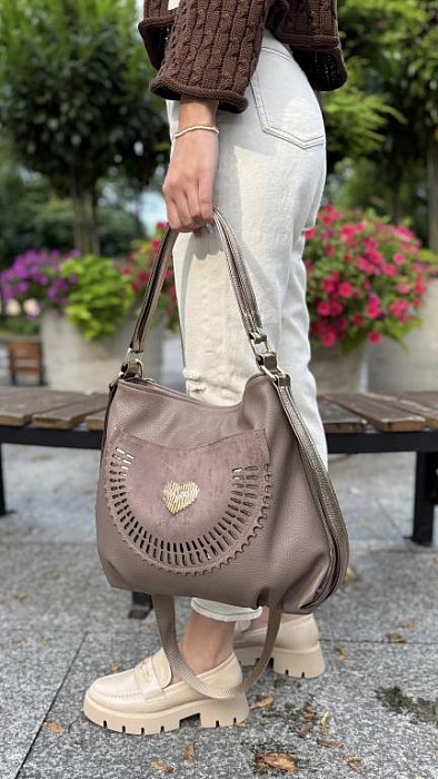 Kabelka Laura Biaggi A541/1 barva čokoládová, kombinace s broušenou kůží (semiš), tmavě zlatá