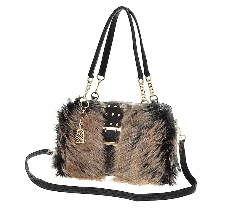 Kabelka Laura Biaggi AB936/1 barva černá doplněná hnědou kožešinkou