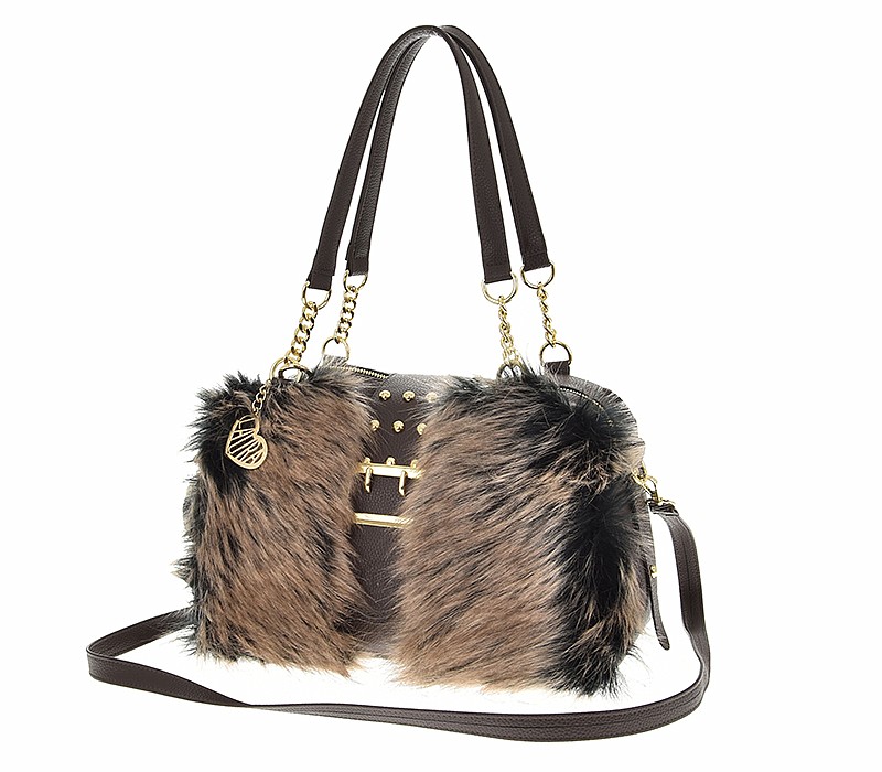 Kabelka Laura Biaggi AB936/2 barva čokoládová doplněná hnědou kožešinkou