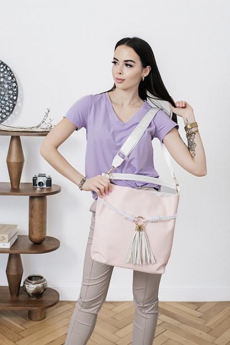 Kabelka Laura Biaggi L325019/1 barva světlá růžová kombinace s bílou