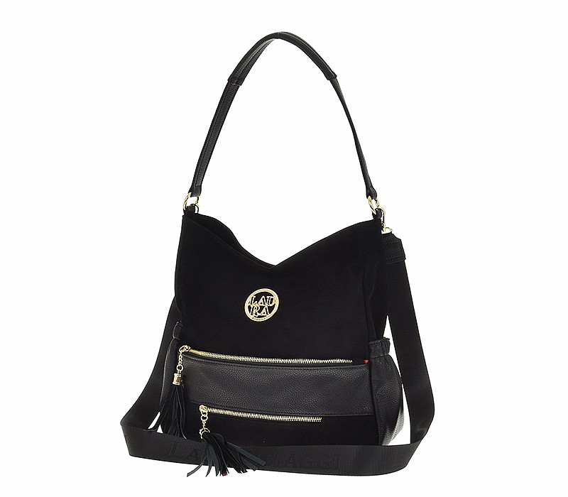 - středně dlouhé ucho z eko kůže, lze použít do ruky i přes rameno, dlouhý délkově nastavitelný textilní popruh s logem LB