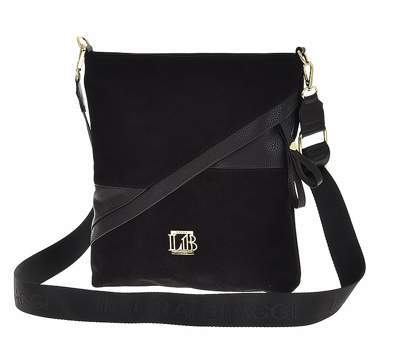 Kabelky Laura Biaggi LA1141/6 černá semišová, doplněná matnou eko kůží