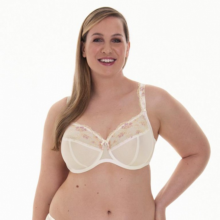 - smyslná podprsenka s barevnou krajkou a jemným síťovaným materiálem